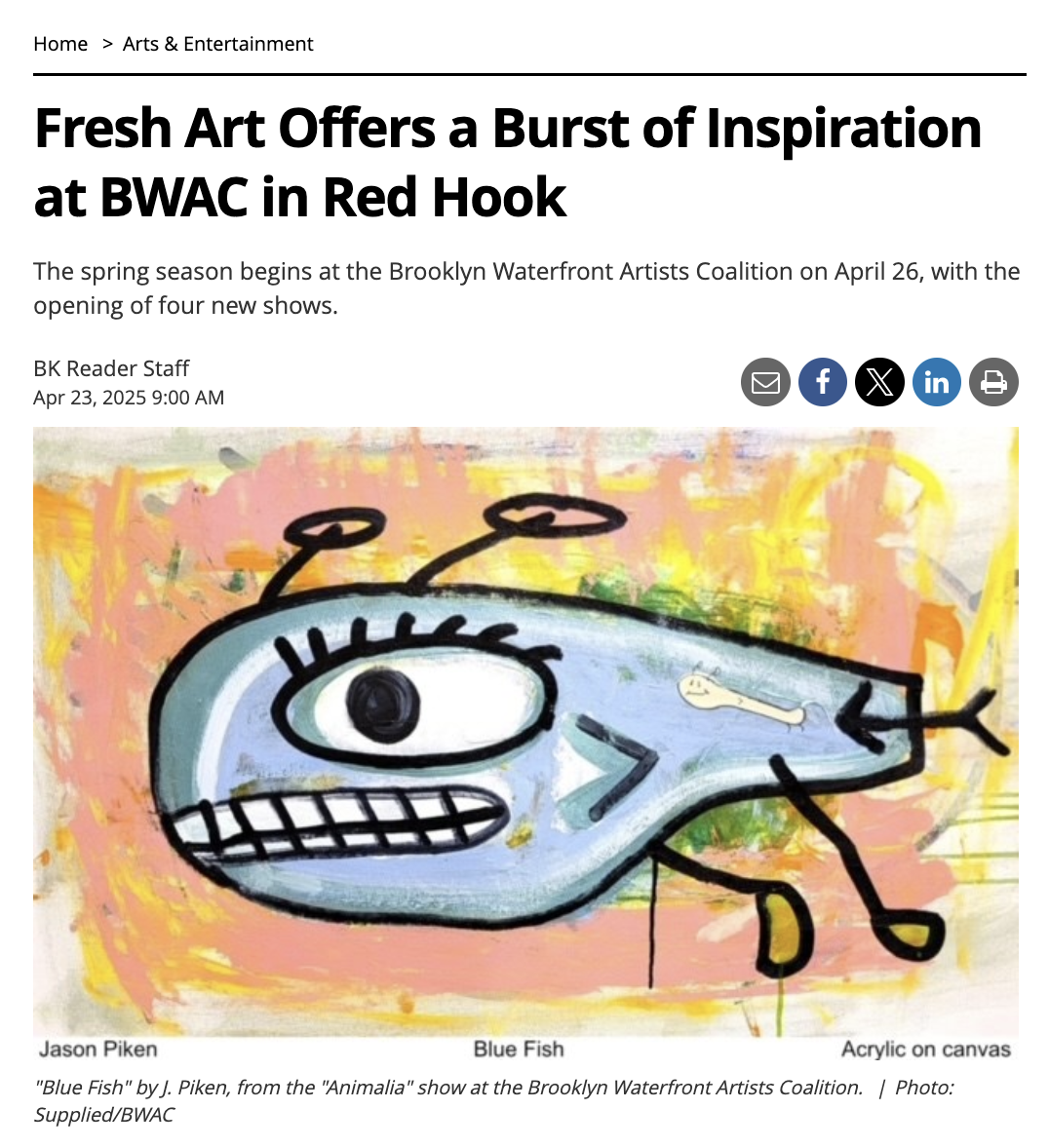 A lively spring season begins at the Brooklyn Waterfront Artists Coalition on Saturday April 26, with the opening of four fresh new shows: